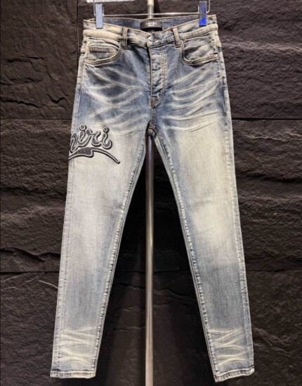 Amiri Ripp Blue White Embroider Jeans – AMIJ024