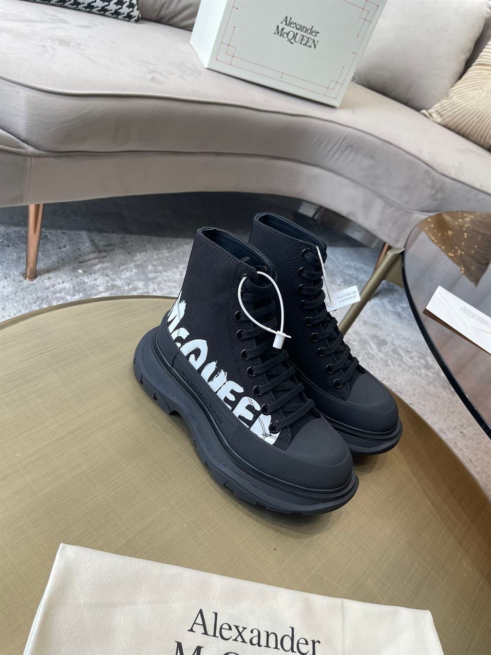 Be the first to review “ALEXANDER MCQUEEN GRAFFITI TREAD SLICK HIGH-TOP SNEAKERS – ALD029” Cancel reply