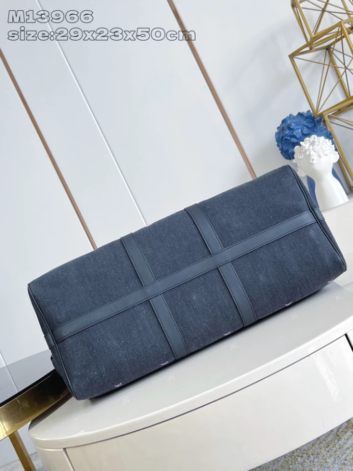 Discover the perfect blend of style and practicality with the KEEPALL BANDOULIERE 50 BAG BLACK BLASON DENIM M13966