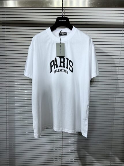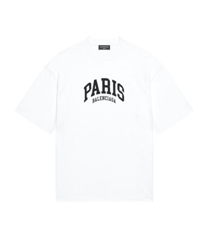 BALENCIAGA MEN’S CITIES PARIS T-SHIRT MEDIUM FIT IN WHITE – BAS008