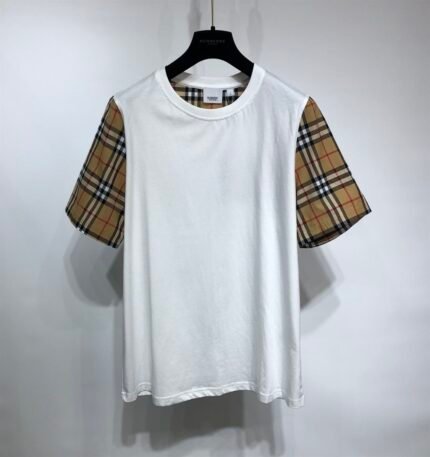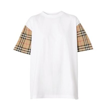 BURBERRY CHECK SLEEVE COTTON OVERSIZED T-SHIRT IN WHITE – BRS010