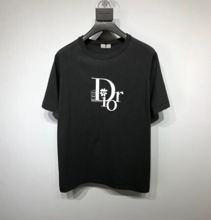 DIOR RELAXED-FIT DIOR BY ERL T-SHIRT BLACK SLUB COTTON JERSEY – DOT022