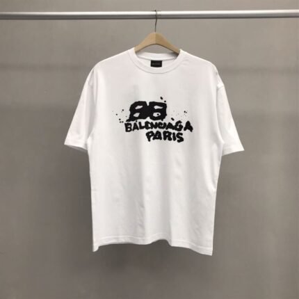 BALENCIAGA HAND DRAWN BB ICON T-SHIRT MEDIUM FIT IN WHITE – BAS014