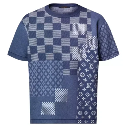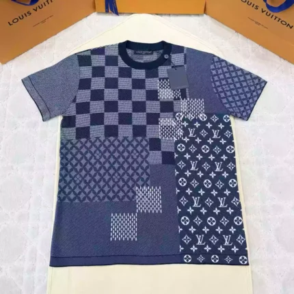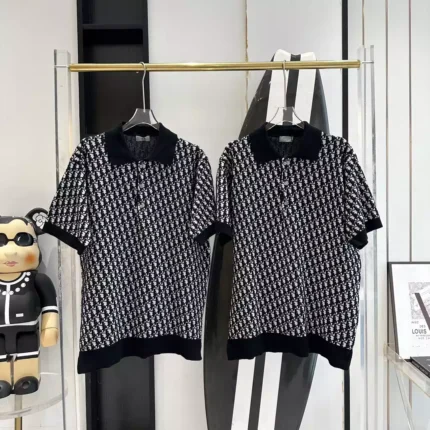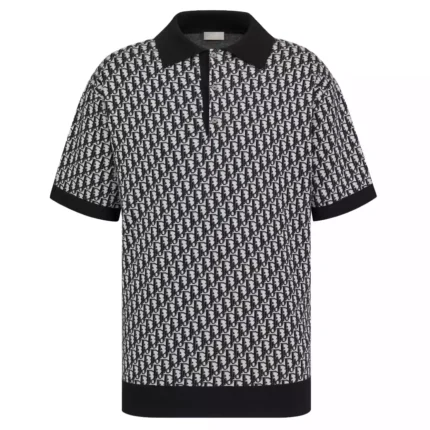 DI0R OBLIQUE POLO SHIRT BEIGE, BLUE AND BLACK COTTON JACQUARD – DOT058