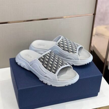 DIOR H-TOWN SANDAL GRAY RUBBER WITH BEIGE AND BLACK DIOR OBLIQUE JACQUARD – DS001