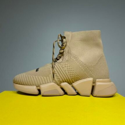 BALENCIAGA MEN’S SPEED 2.0 LACE-UP RECYCLED KNIT SNEAKER IN BEIGE – BLA032