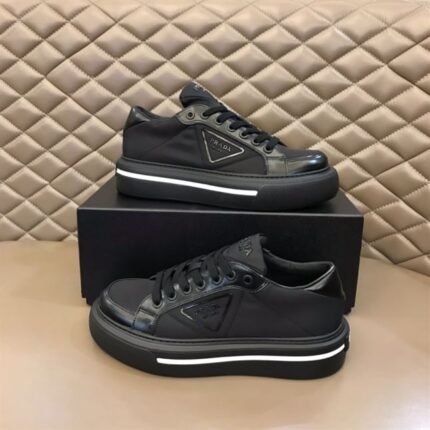 PRADA MACRO RE-NYLON AND BRUSHED LEATHER SNEAKERS – PRS058