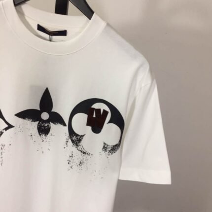 Louis Vuitton White Short Sleeve Glitter Monogram Logo Shirt – LVTS080