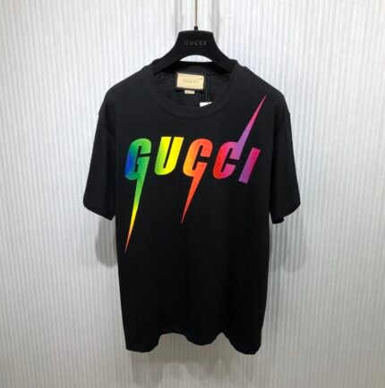 GUCCI BLACK COTTON T-SHIRT WITH GUCCI BLADE PRINT – GGS010