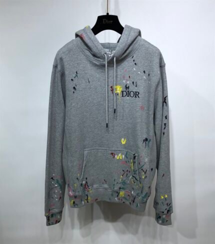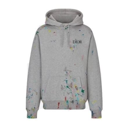 DIOR OVERSIZED SWEATSHIRT WHITE COTTON FLEECE WITH PAINT PRINT – DOS013