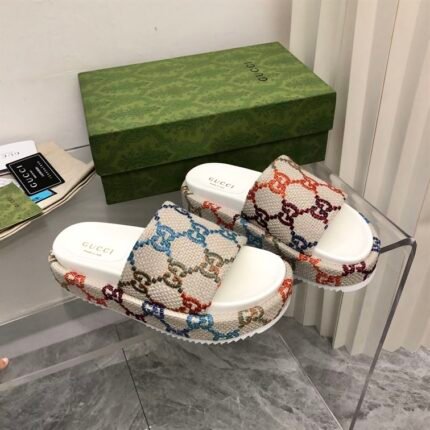 GUCCI ANGELINA EMBROIDERED LOGO PLATFORM SLIDE SANDAL – GSL026