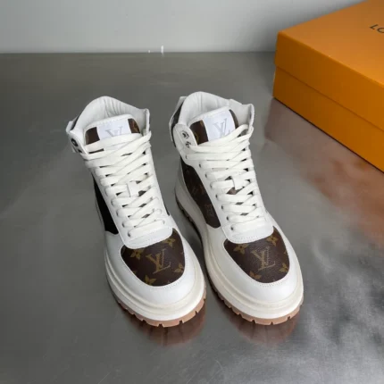 LOUIS VUITTON LEATHER ROUND TOE LACE-UP HIGH-TOP SNEAKERS – LVS258
