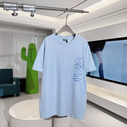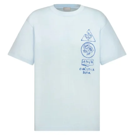 DIOR COUTURE T-SHIRT, RELAXED FIT BLUE TERRY COTTON – DOT039