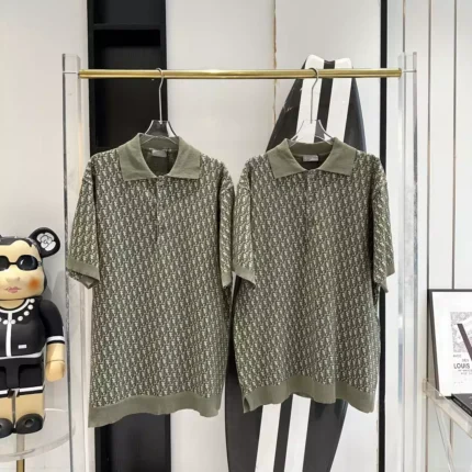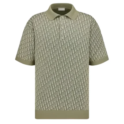DI0R OBLIQUE POLO SHIRT KHAKI COTTON JACQUARD – DOT059