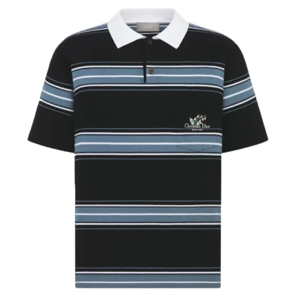 DIOR COUTURE LILY OF THE VALLEY POLO SHIRT BLUE COTTON AND CASHMERE JERSEY – DOT040