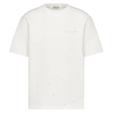 DIOR COUTURE T-SHIRT, RELAXED FIT WHITE DISTRESSED-EFFECT COTTON JERSEY – DOT045
