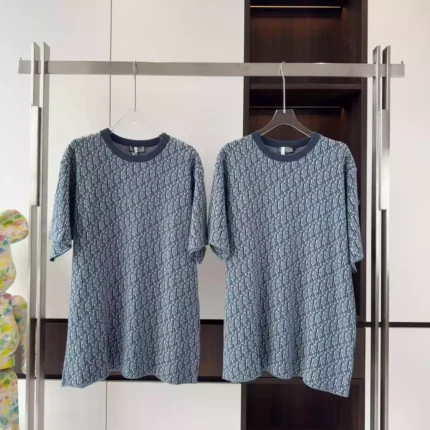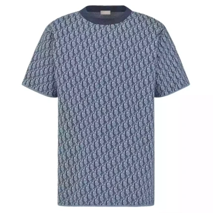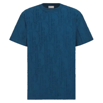 DIOR OBLIQUE T-SHIRT RELAXED FIT BLUE COTTON JACQUARD – DOT043