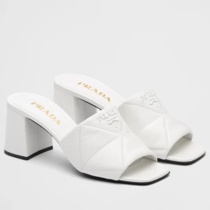 PRADA HEELED SLIDE SANDALS 65MM IN WHITE NAPPA LEATHER – PSD036