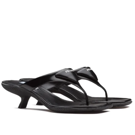 PRADA HEELED THONG SANDALS IN BLACK BRUSHED LEATHER – PSD052