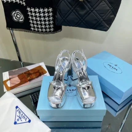 PRADA PLATFORM SANDALS 135MM IN SILVER METALLIC LEATHER – PSD056